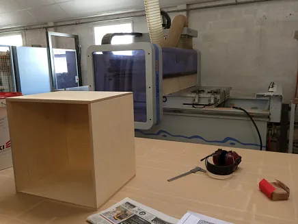Med den computerstyrede CNC-fræser, kan vi fræse os igennem den ene krydsfinerplade efter den anden og udskære et stor antal ens dele i præcise former og størrelser. Det kan være til dele til bogkasser, hylder, reoler, finurlige figurer, bogstaver eller hvad som helst, der kan sættes sammen til spændende former og designs.